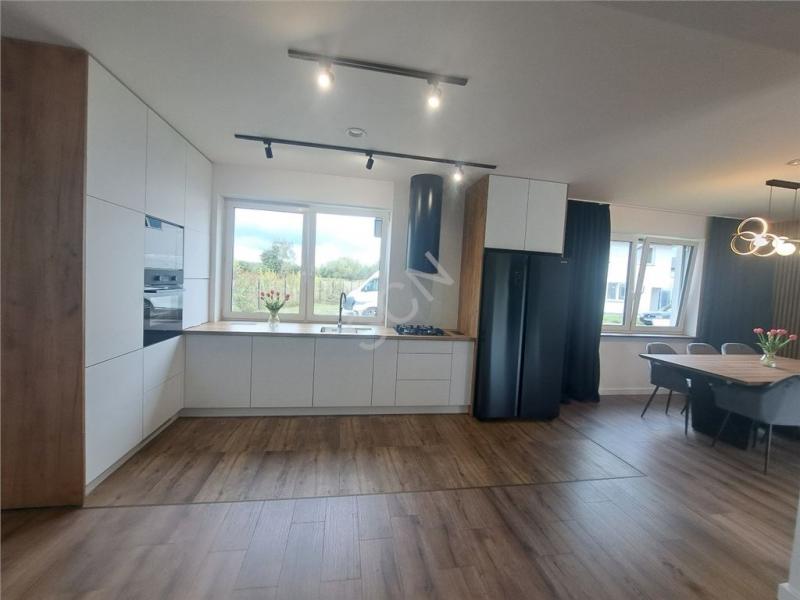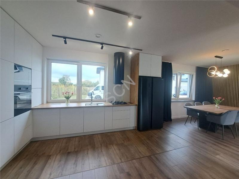 Parter: wiatrołap , widna kuchnia z zabudową i wyposażeniem (lodówka,okap,piekarnik,zmywarka i płyta gazowa) , pokój dzienny i łazienka.