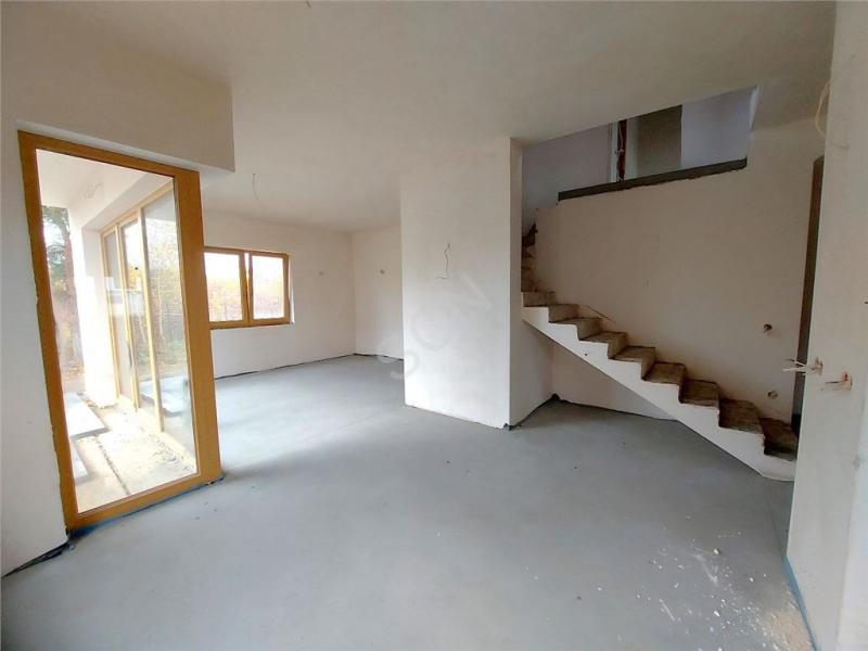 Dom o powierzchni 197 m oferuje funkcjonalny układ: na parterze przedpokój prowadzi do jasnej części dziennej z kuchnią, jadalnią i salonem, z wyjściem na ogród o pow. ok. 350 m. Na tym poziomie znajduje się również WC. Piętro tworzy komfortowa strefa nocna z główną sypialnią z garderobą i prywatną łazienką, dodatkową sypialnią z garderobą, dwiema mniejszymi sypialniami oraz drugą łazienką. Dodatkowe poddasze można zaadaptować według potrzeb.