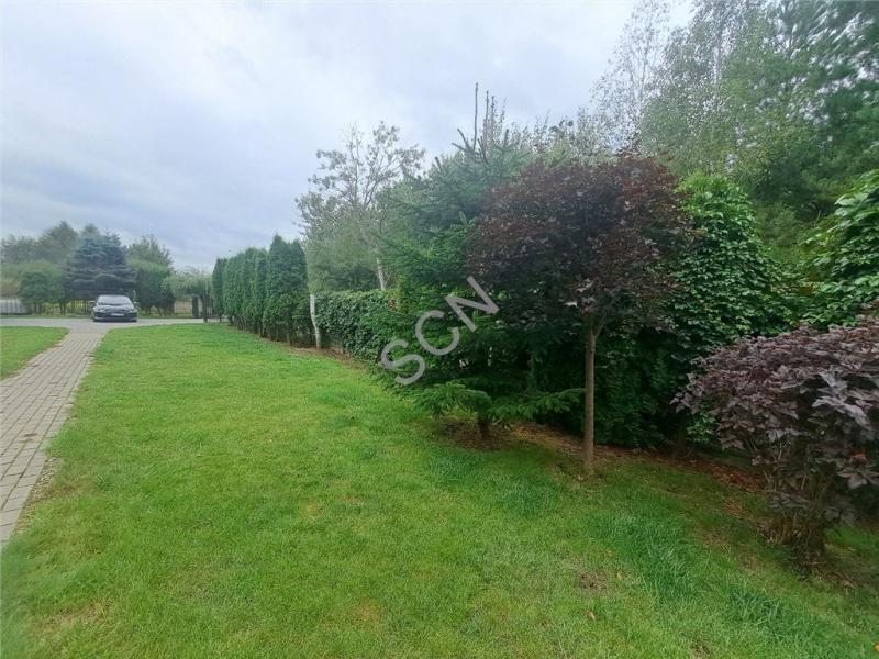 Działka z nasadzeniami i podjazdami z kostki brukowej . Dwie bramy otwierane automatyczne.