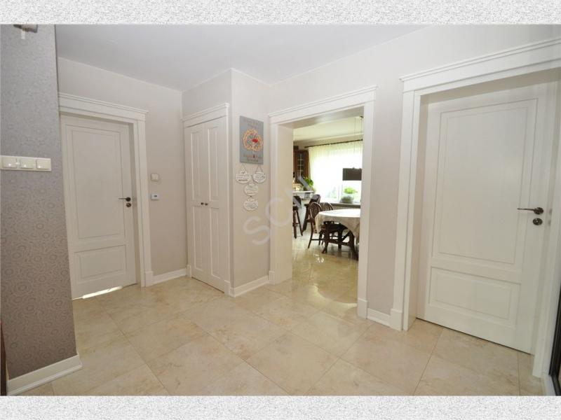 Na parterze znajduje się przestronny hall, jadalnia otwarta na salon z kominkiem o pow .36m2, z którego możemy wyjść na duży słoneczny taras, kuchnia z jadalnią o pow. 16m2, gabinet o pow.20 m2, sypialnia o pow.16 m2 oraz łazienka. Na piętrze znajduje się drugi salon z kominkiem o pow. 24m2, 3 duże sypialnie o pow. 20 m2 każda i jedna z balkonem o pow. 16 m2 oraz pokój kąpielowy.