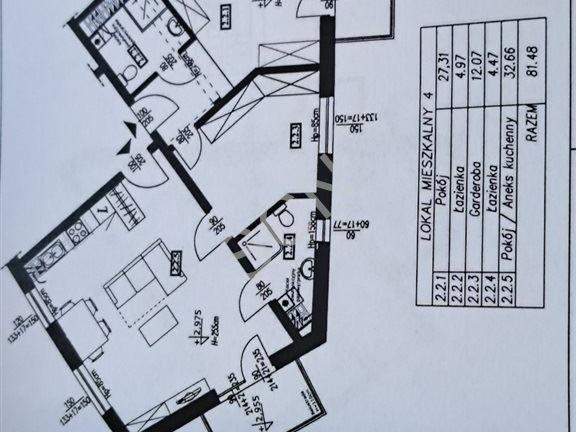 Pokój z aneksem : 32,66 m2 i wyjściem na balkon.
