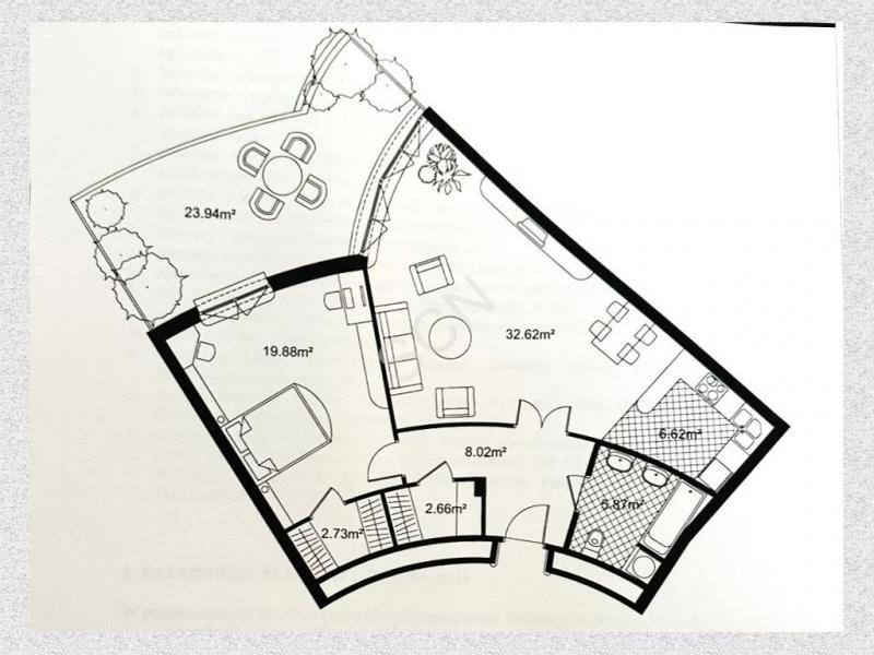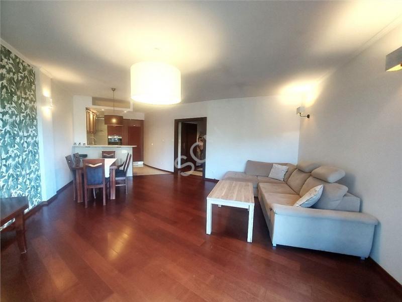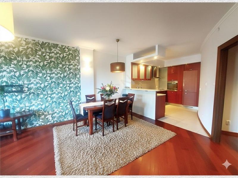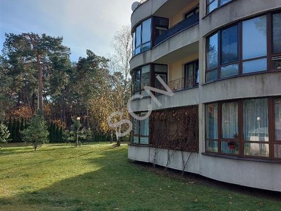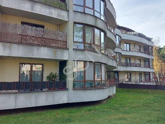 Wnętrze zachwyca przestrzenią i światłem. Salon z aneksem kuchennym i wyjściem na 25-metrowy taras tworzy przytulną strefę dzienną z widokiem na las. Sypialnia z garderobą i drugim wyjściem na taras zapewnia prywatność i komfort. Do dyspozycji pozostaje także druga garderoba oraz elegancka łazienka z wanną. Mieszkanie wykończone z dbałością o każdy detal z podłogami z drewna egzotycznego i trawertynu zachowuje ponadczasowy charakter i ciepły klimat.